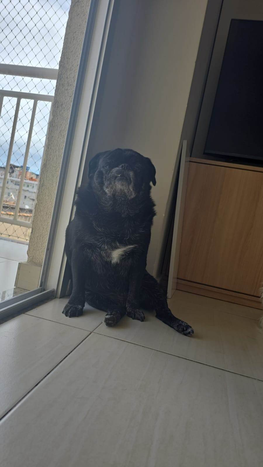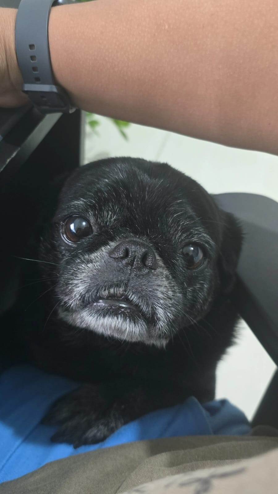 Café é um PUG e tem 8 anos, sempre bem cuidado e adora brincar, ele gosta de atenção e comer kk Infelizmente estou doando porque eu tive que mudar da casa que a gente morava e agora no apartamento ele não está se adaptando, quero muito conseguir um lar que tenha espaço e alguem que cuide dele com carinho.