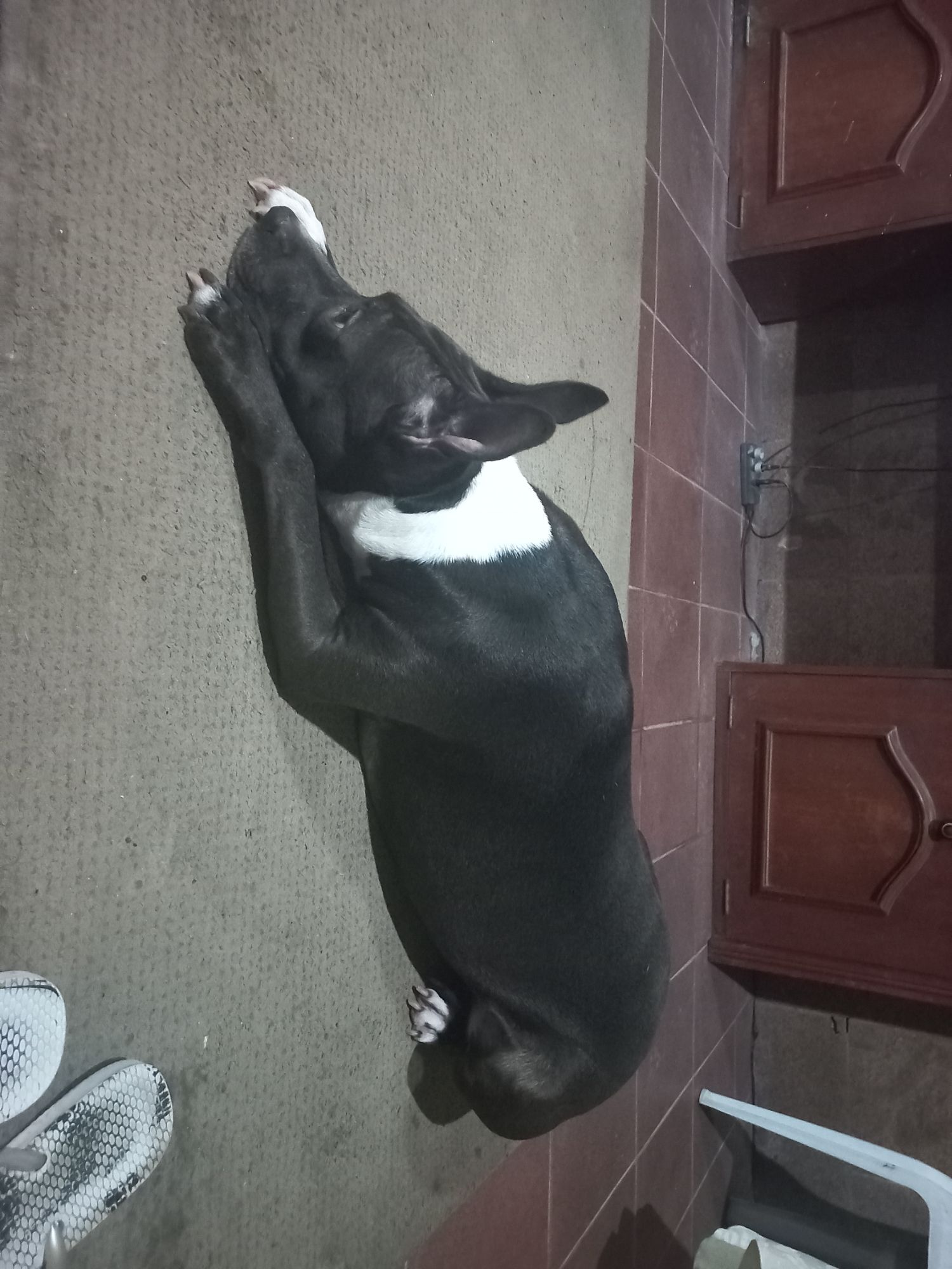 Pitbull muito carinhosa, protetora, obediente e bem dorminhoca. Ronca bastante e sonha muito
